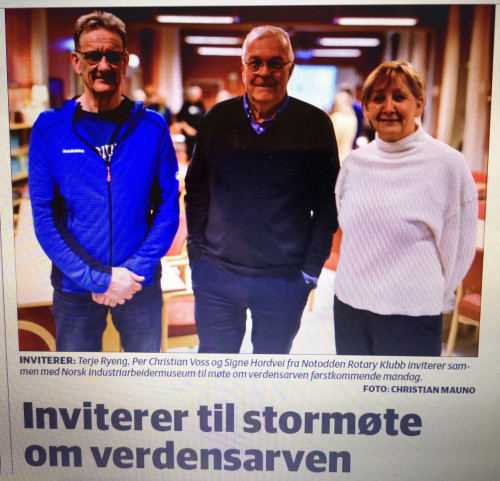 Notodden Rotary klubb og Norsk industriarbeidermuseum inviterer til møte: "Står vi i fare for å miste verdensarven? Telemark Kunstmuseum, 10.mars, 2025 kl. 18:00.