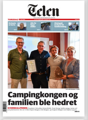 "Campingkongen på Notodden og familien ble hedret" skrev avisen Telen på førstesiden i avisen 15. mai, 2025, etter at Notodden Rotary Klubb den 12. mai tildelte Kvernkallprisen 2025 til Bent Espen Haugen. Familien spiller en viktig rolle i de aktivitetene som ligger til grunn for tildelingen.