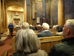 Mange var møtt fram for å høre Olav Sem sitt foredrag i Heddal Stavkirke etter pristildelingen. Foto: Inge O. Waage.