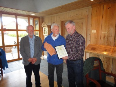 Fra venstre: President Svein Aanestad, prismottaker Olav Sem og leder av Kvernkallkomiteen Odd Kyllingmark. Foto: Inge O. Waage.