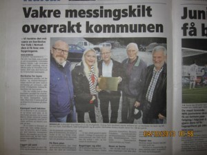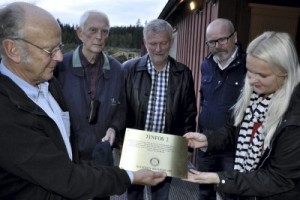 Mottakere på kommunens vegne 3. oktober var kultursjef Terje Malm og leder av utvalget for kultur- og stedsutvikling Åslaug Sem-Jacobsen. For klubben deltok Ivar T. Dahl, Axel Mørch og Odd Kyllingmark. Foto Mari Nymoen, Telen.