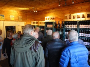Dette blir kun til de ikke-kjørende, da det her er snakk om sterke saker. Smakene er nok til dels forskjellige fra hva vi er vant til, men med litt tilvenning, vil sikkert flere av oss bli med i fanklubben. Ingeborg orienterer og forklarer. Vi får også en tur innom produksjonsavdelingen, med skinnende rene og blanke rør og tanker. Til sist står det bare igjen å plukke med oss det vi kjøpte innledningsvis, og så finne veien til bilene.