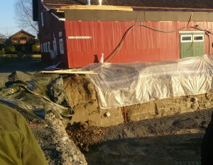 Et digert hull i bakken bak loven viser hvor det skal bygges for å gi plass til flere store tønner og fat. Foto Inge O. Waage